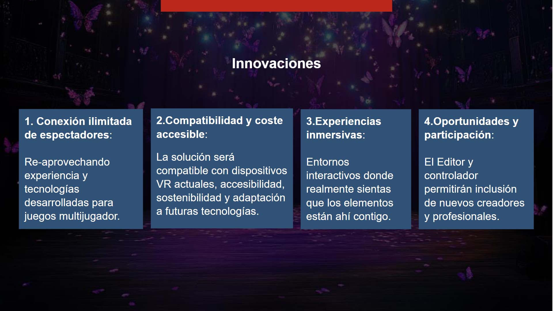 The project adapts and makes these technologies, which are already widely used in video games, accessible to directors, theatrical creatives, audiovisual companies, and other developers. This aims to open new business and employment opportunities, expand and enhance the quality of cultural offerings, and foster private and public investment.